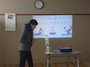 手話をする時に関わる筋肉を確認した後、マットの上でそれらの筋肉を使いながら運動をしました。